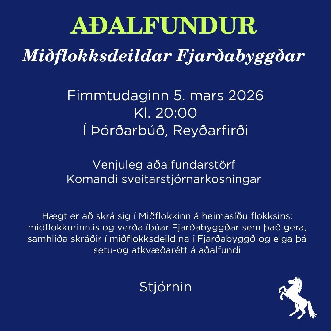 Aðalfundur Miðflokksdeildar Fjarðabyggðar verður haldinn fimmtudaginn 5. mars 2026